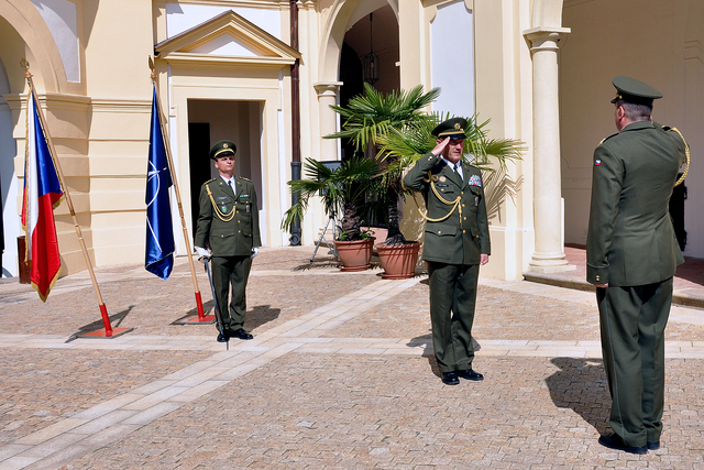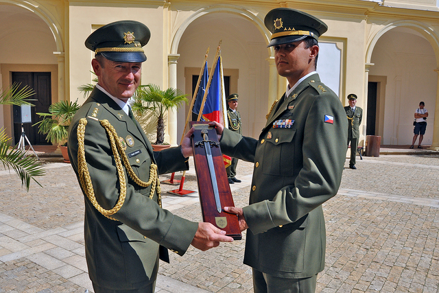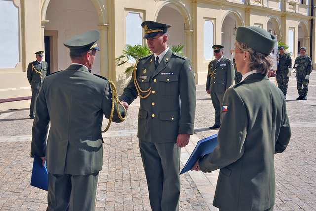 Úspěšní absolventi jsou příslušníci nejrůznějších součástí AČR - certifikát přebírá příslušník Hradní stráže