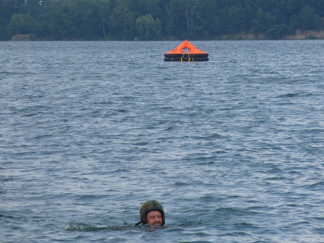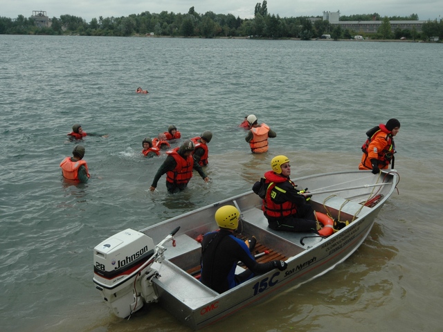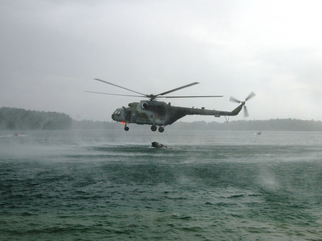 Příslušníci 23.zVrl při nácviku záchranné činnosti z vodní hladiny za použití palubního jeřábu