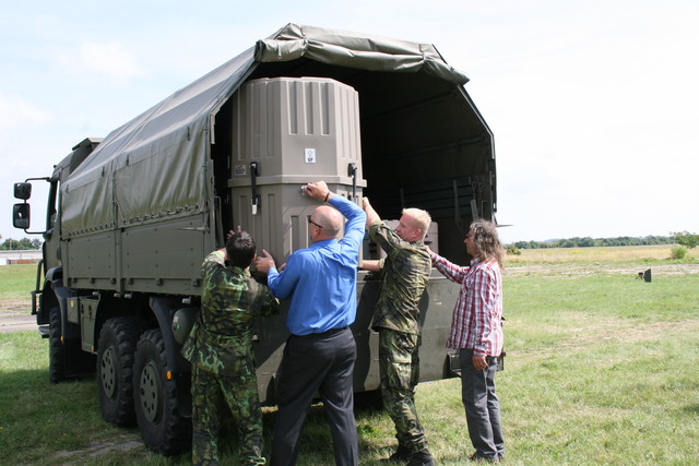 Montáži radaru přihlíží náčelník hydrometeorologické služby AČR pplk. Jan Círek