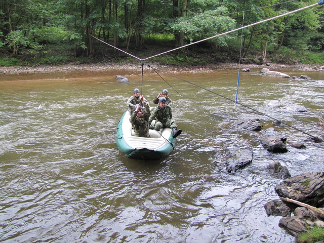 Jednou z lanových technik při překonávání řeky byl postup po nataženém laně