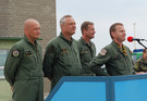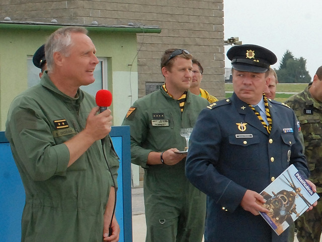 Velitel vzdušných sil plukovník gšt. Libor Štefánik, zástupce náčelníka generálního štábu generálmajor Bohuslav Dvořák, velitel 22. základny letectva plukovník gšt. Jiří Vávra a velitel 221. vrtulníkové letky major Pavel Procházka při nástupu létajícího a technického personálu