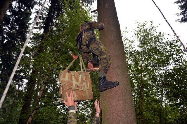 Úkolem bylo v co nekratší době dopravit 20 kg zátěž v tašce od padáku z výšky 20 metrů