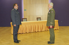 Plukovník Hynek Novák, pověřený velitel Sil podpory podává hlášení generálu Pavlovi
