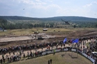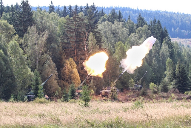 Kruhová obrana příslušníku 4. brigády rychlého nasazení při hlavní ukázce na Bahnech 2013
