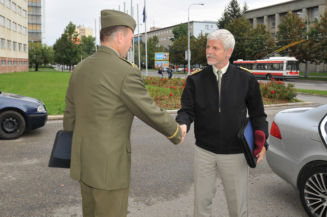 Náčelníka GŠ AČR vítá na Univerzitě obrany její rektor-velitel brigádní generál Bohuslav Přikryl
