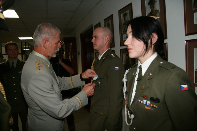 Medaili ministra obrany Za službu v zahraničí je dekorován velitel skupiny EOD nadporučík Igor Balogh