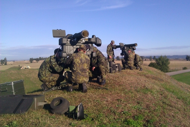 Obsluhy protiletadlového raketového kompletu RBS-70 cvičí na 22. základně letectva Sedlec, Vícenice.