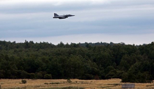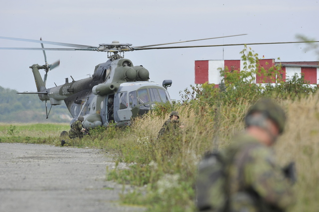 Letecká podpora maďarského letounu JAS-39 Gripen pozemním jednotkám na součinnostní střelnice Velká Střelná ve VVP Libavá