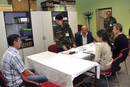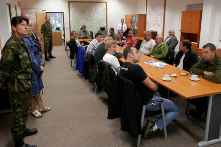 Ze zahájení nácviku odvodního řízení na Městském úřadě v Jindřichově Hradci, kterého se zúčastnil ředitel KVV Č. Budějovice plk. gšt. Vladimír Pešek a starosta MěÚ Jindřichův Hradec Stanislav Mrvka (2)