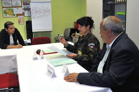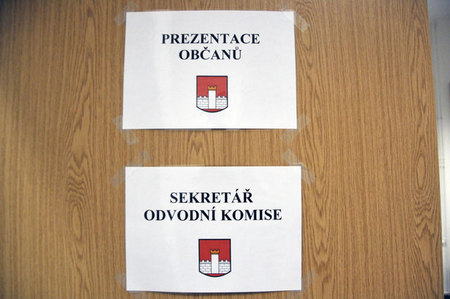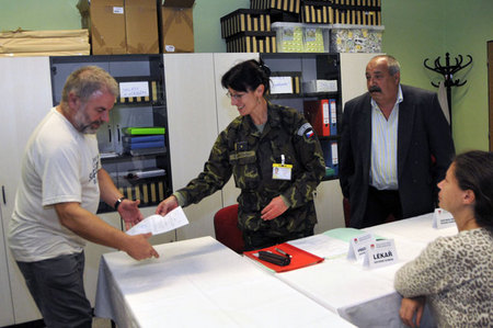 Předsedkyně odvodní komise vyhlašuje rozhodnutí panu Beránkovi, zcela vlevo plk.gšt. Vladimír Pešek