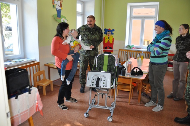 Podplukovník Sabela u předání daru pořízeného z charitativní akce 102. pzpr