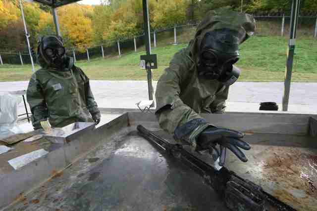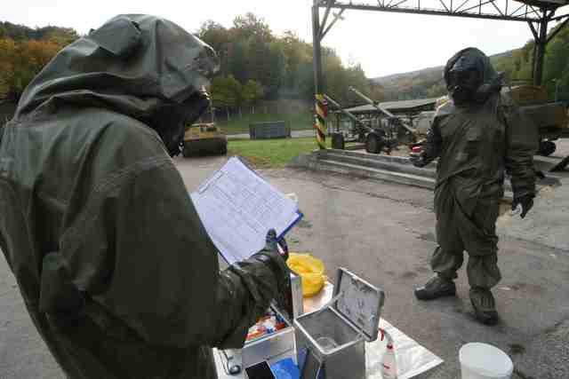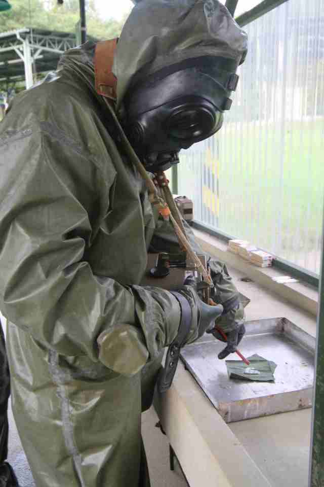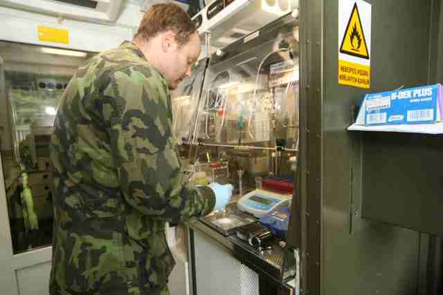 Toxic Leak 2013: npor. Dušan Trefilík provádí rozbor vzorků v chemické laboratoři AL-2/Ch