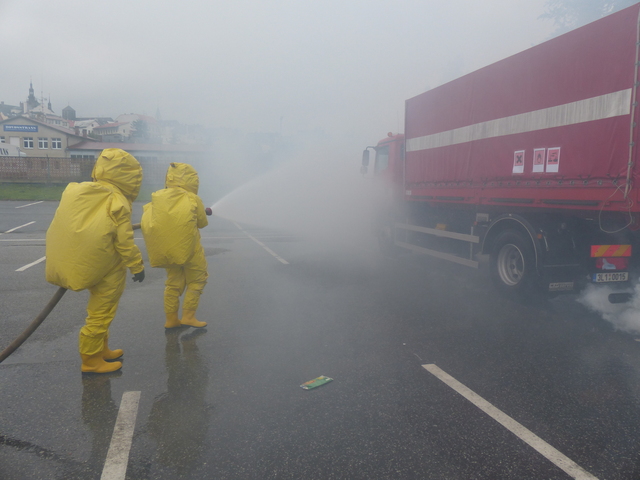 Během simulovaného zásahu se prověřovala součinnost hasičů a vojenských chemiků