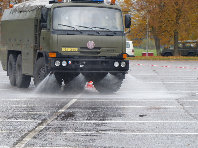Práce zahájilo vojenské družstvo radiačního a chemického průzkumu a potvrdilo přítomnost chlóru