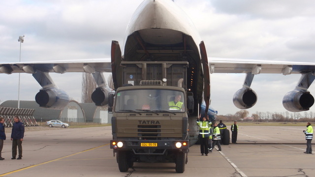 25.10.2013 Vykládání materiálu z nákladního letadla Iljušin IL-76