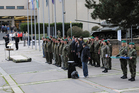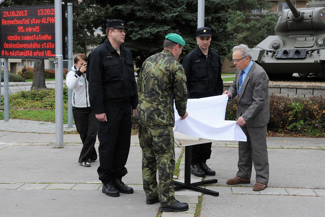 Příslušníci VeV-VA a hosté nastoupeni k oslavám 95. výročí vzniku samostaného československého státu