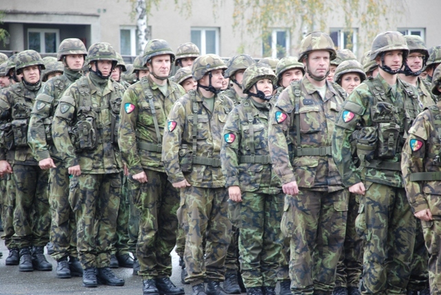 Nastoupená jednotka TF72 při závěrečné kontrole před výjezdem na mezinárodní cvičení SABER JUNCTION II.