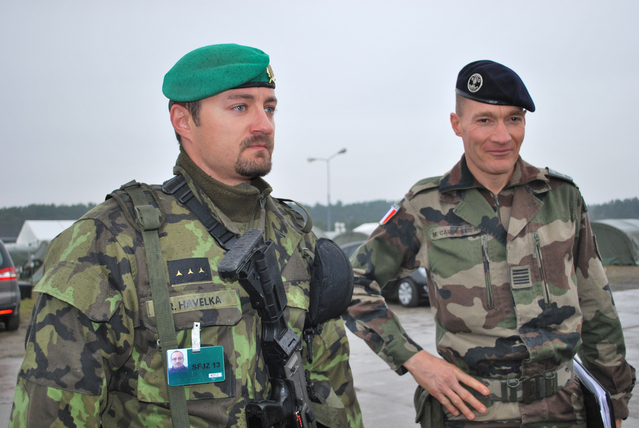 Velitel mnohonárodního praporu plukovník Marc Caudrillier s velitelem roty nadporučíkem Rostislavem Havelkou