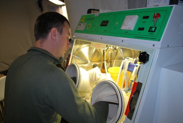 Společný výcvik chemiků mnohonárodního praporu radiační, chemické a biologické ochrany