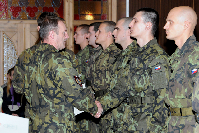 Zástupce velitele VeV-VA plk.Honzák předává osvědčení o absolvování kurzu základní přípravy - AZ