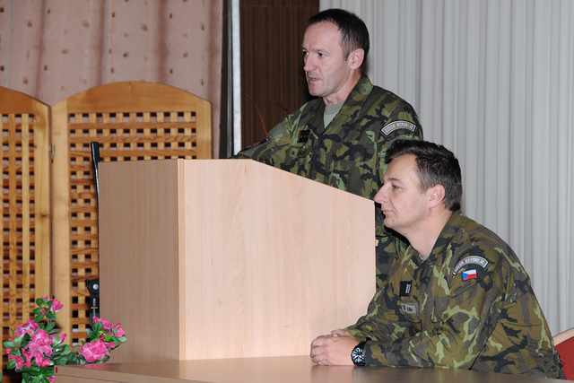 Zástupce velitele VeV-VA plukovník gšt. Rudolf Honzák hovořil k absolventům při slavnostním ukončení kurzu