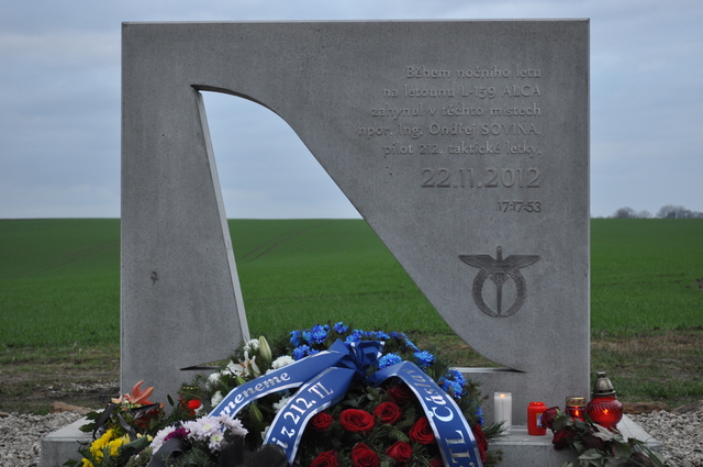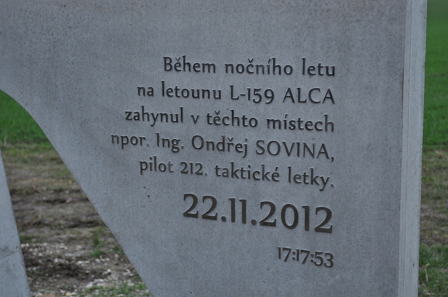 Zadní strana pomníku nadporučíku Ondřeji Sovinovi