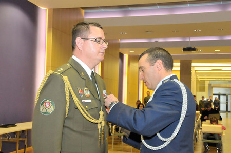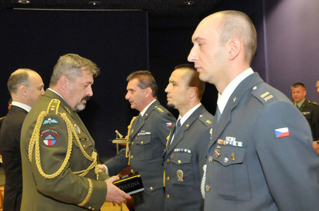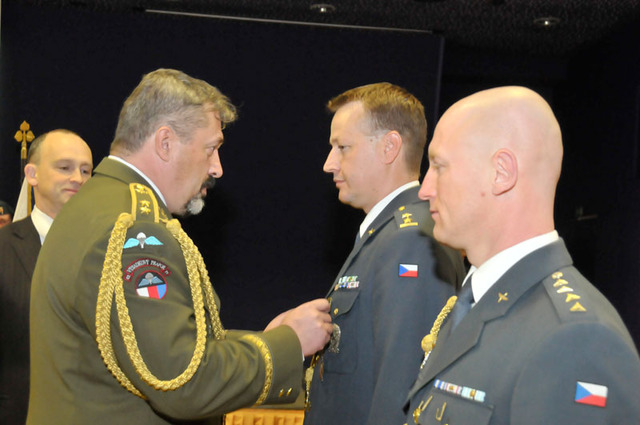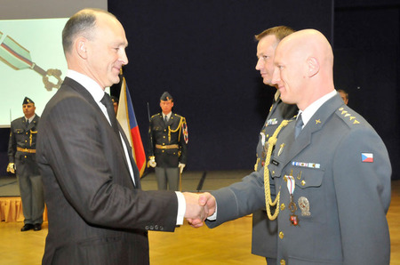 Medaili ministra obrany USA Za za rozvoj vzájemných vztahů mezi armádami České republiky a USA převzal od přidělence obrany ambasády USA v Praze plukovníka Patricka T. Sullivana podplukovník David Schnabel