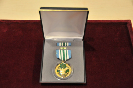 Medaile ministra obrany USA Joint Service Commendation Medal, udělená za rozvoj vzájemných vztahů mezi armádami ČR a USA