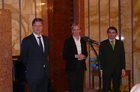 Generál Žižka přebírá cenu „Přístav“ z rukou náměstkyně ministra školství Evy Bartoňové a předsedy ČRDM Aleše Sedláčka