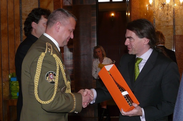 Zástupce náčelníka Generálního štábu AČR generálmajor Miroslav Žižka v reprezentačních prostorách primátorské rezidence před převzetím ceny „Přístav“.