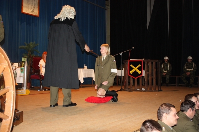 Velitel 13.dp plk.gšt. Jan Třináctý pasoval celkem 12 vojáků do cechu kanonýrů 13.dp;