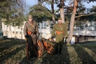 Kpt. Miloslav Viktora a nrtm. Jiří Pospíšil v prvorepublikových uniformách u děla;