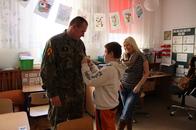 Nadrotmistr František Mutl, učitelka Pavla Koutníková, František Mutl ml. a ředitelka školy Ivanka Šťastná (zleva).