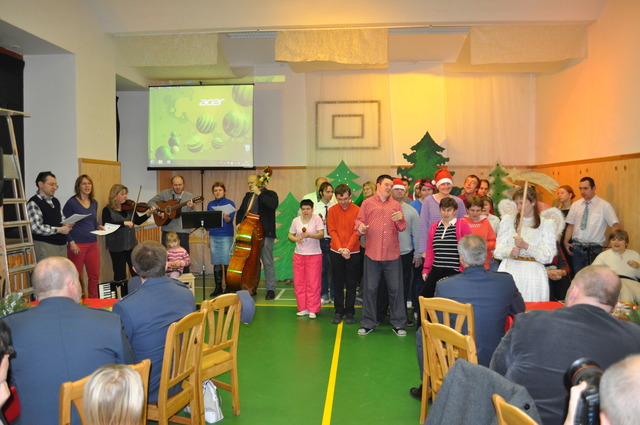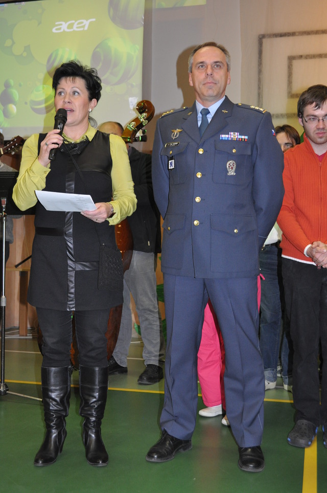 Zahájení společného večera ve Středisku Diakonie v Čáslavi ředitelkou paní Květuší Mašínovou a velitelem 21. zTL plukovníkem Petrem Hromkem
