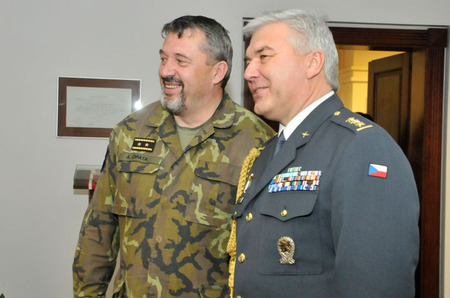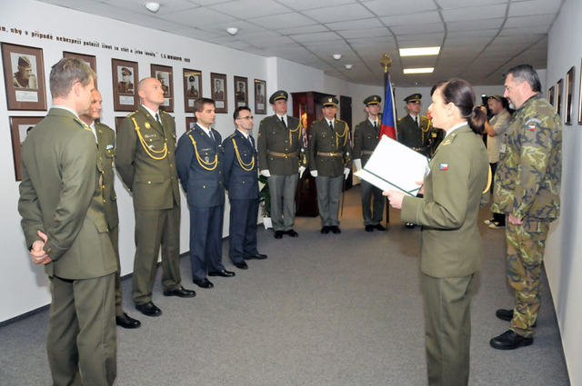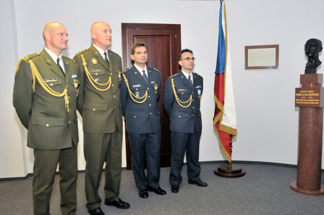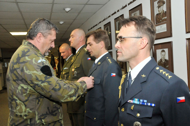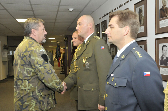 Vojákům přišel poblahopřát k uděleným vyznemenáním nejen generál Aleš Opata, ale také zástupce velitele Vzdušných sil AČR plukovník gšt. Jaromír Šebesta