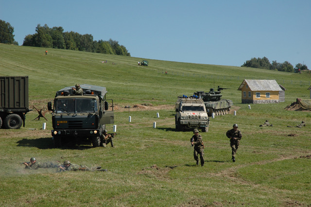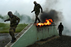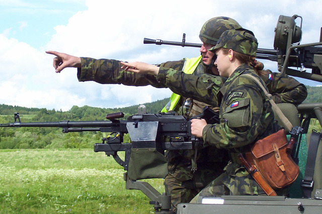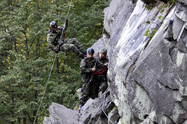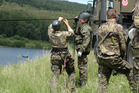 příslušníci pěší roty KVV České Budějovice při nácviku střežení objektu u areálu jaderné elektrárny Temelín