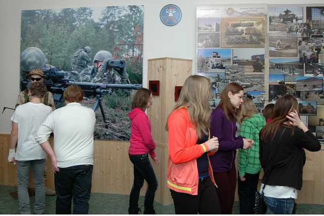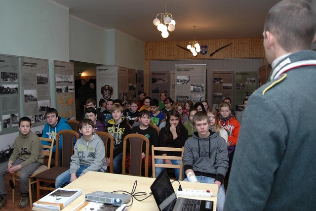Projekt LEGIE 100 láká do bučovických kasáren především studenty. Statickou výstavu doplňuje zajímavá přednáška, při které mají přednášející příslušníci 74. lmopr oblečenou pro zpestření dobovou uniformu.