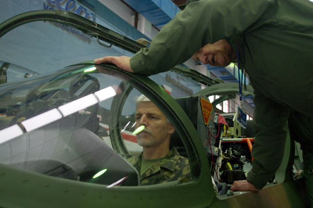 Generálporučík Pavel sleduje práce na úpravách továrního prototypu L-159 ALCA
