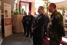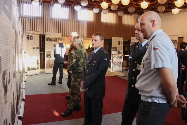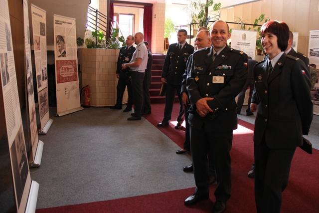 Výstavu zahájil velitel strakonického útvaru plukovník Vladimír Barca společně s vrchním praporčíkem Miroslavem Filipčíkem (zprava).