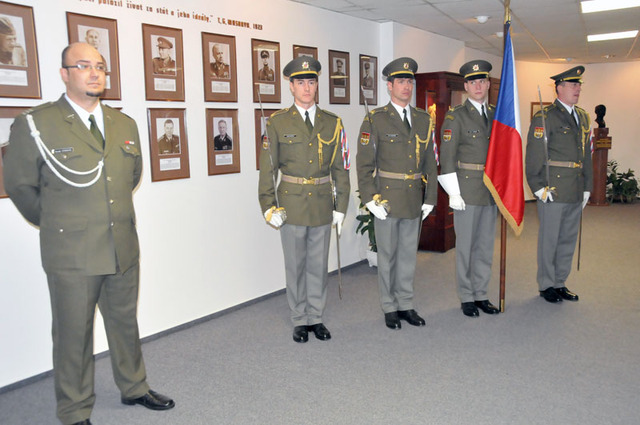 Praporčík Tomáš Vitamvás s čestnou jednotkou před zahájením slavnostního nástupu na GŠ AČR