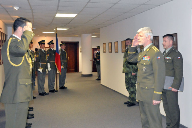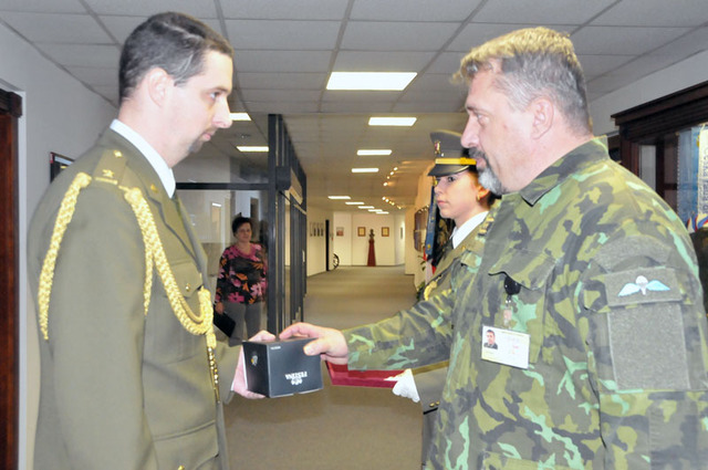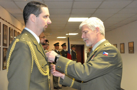 Medaili ministra obrany ČR Za službu v zahraničí - Kosovo III. stupně předal mjr Janu Matulovi náčelník GŠ AČR generálporučík Petr Pavel