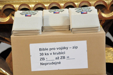 Čtyřem tisícům nových biblí určených pro české vojáky požehnal kardinál Dominik Duka