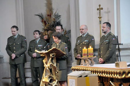 Slavnostní ekumenická bohoslužba s představením nových vojenských biblí se konala ve Vojenském kostele sv. Jana Nepomuckého v Praze, Hradčanech
