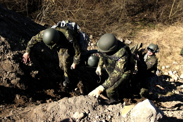 Instruktoři připravili cvičícím náročné podmínky – transport raněného do prudkého srázu.