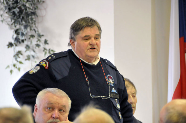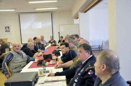 Z jednání Klubu výsadkových veteránů v Jindřichově Hradci, který řídil předseda podplukovník v.v. Petr Čejka (stojící)