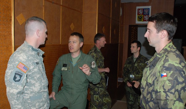 Npor. Jan Štrbík z velitelství Vzdušných sil AČR při rozhovoru se slovenským kolegou