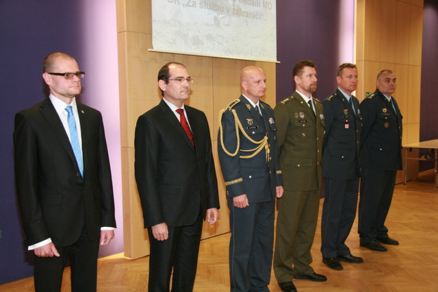Medaile „Za službu v zahraničí“ různých stupňů převzali všichni ocenění z rukou prvního náměstka ministra obrany Jiřího Borovce