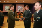 Věcný dar za příkladné splnění úkolů v misi ISAF předal třem oceněným náčelník štábu Společného operačního centra MO plukovník Radek Šíba