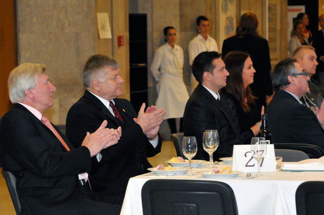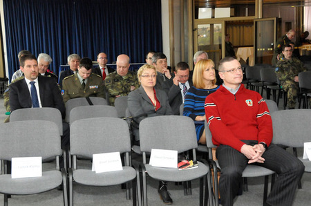Čestní hosté setkání v Kongresovém centru Praha - zleva: ředitel Sekce rozvoje a plánování schopností MO generál Pavel Adam, místopředseda Senátu PČR Přemysl Sobotka a náměstek ministra obrany pro legislativu Jakub Kulhánek