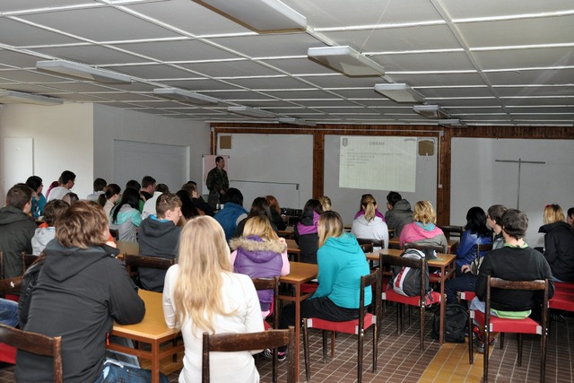 Náčelník Úseku přípravy Komando major Zahuranec seznamuje studenty s kurzem Komando